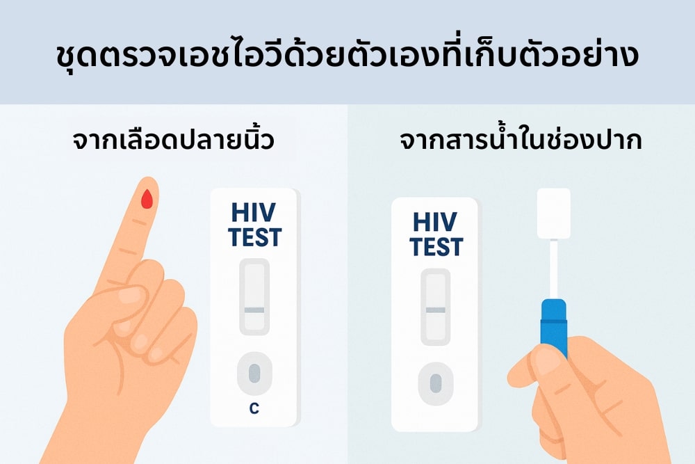 ชุดตรวจเอชไอวีด้วยตนเอง (HIV Self-Test) เป็นอุปกรณ์ที่ช่วยให้ผู้ใช้งานสามารถเก็บตัวอย่าง และตรวจการติดเชื้อเอชไอวีด้วยตนเองที่บ้าน เหมาะสำหรับผู้ที่มีความเสี่ยง แต่ไม่ต้องการหรือไม่สะดวกในการเข้ารับการตรวจคัดกรองยังสถานพยาบาลหรือคลินิก เนื่องจากต้องการความเป็นส่วนตัว โดยตัวอย่างที่ใช้เก็บมีทั้ง “เลือดจากปลายนิ้ว” และ “สารน้ำในช่องปาก” ซึ่งทั้งสองรูปแบบนี้ ผ่านการทดสอบว่ามีความแม่นยำสูง เมื่อใช้อย่างถูกวิธี